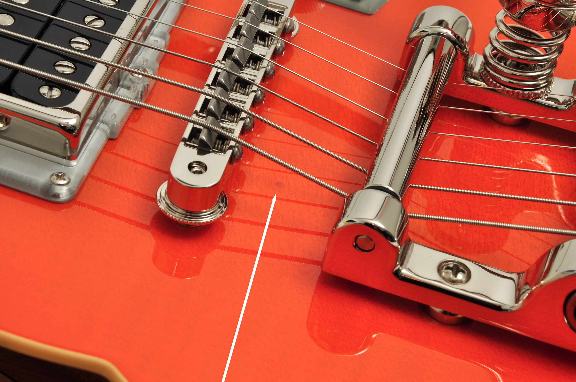 • Small colored spot between bridge & tremolo